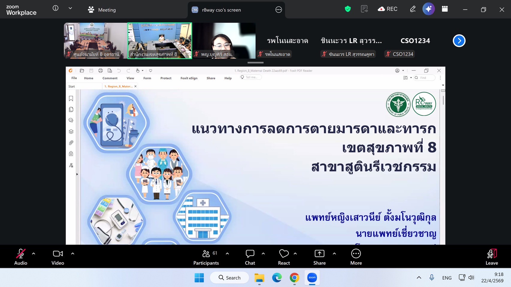 นย์อนามัยที่ 8 อุดรธานี เข้าร่วมประชุมคณะทำงานพัฒนาระบบบริการสุขภาพ สาขาสูติ-นรีเวชกรรม (MCHB) เขตสุขภาพที่ 8 (ผ่านระบบออนไลน์)