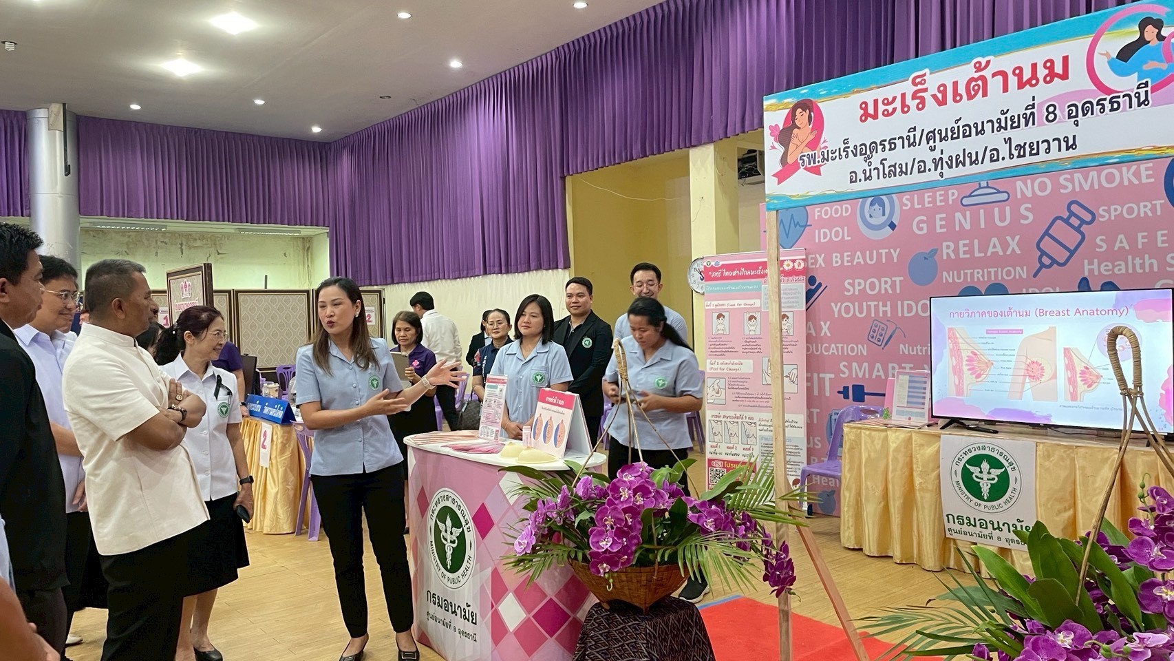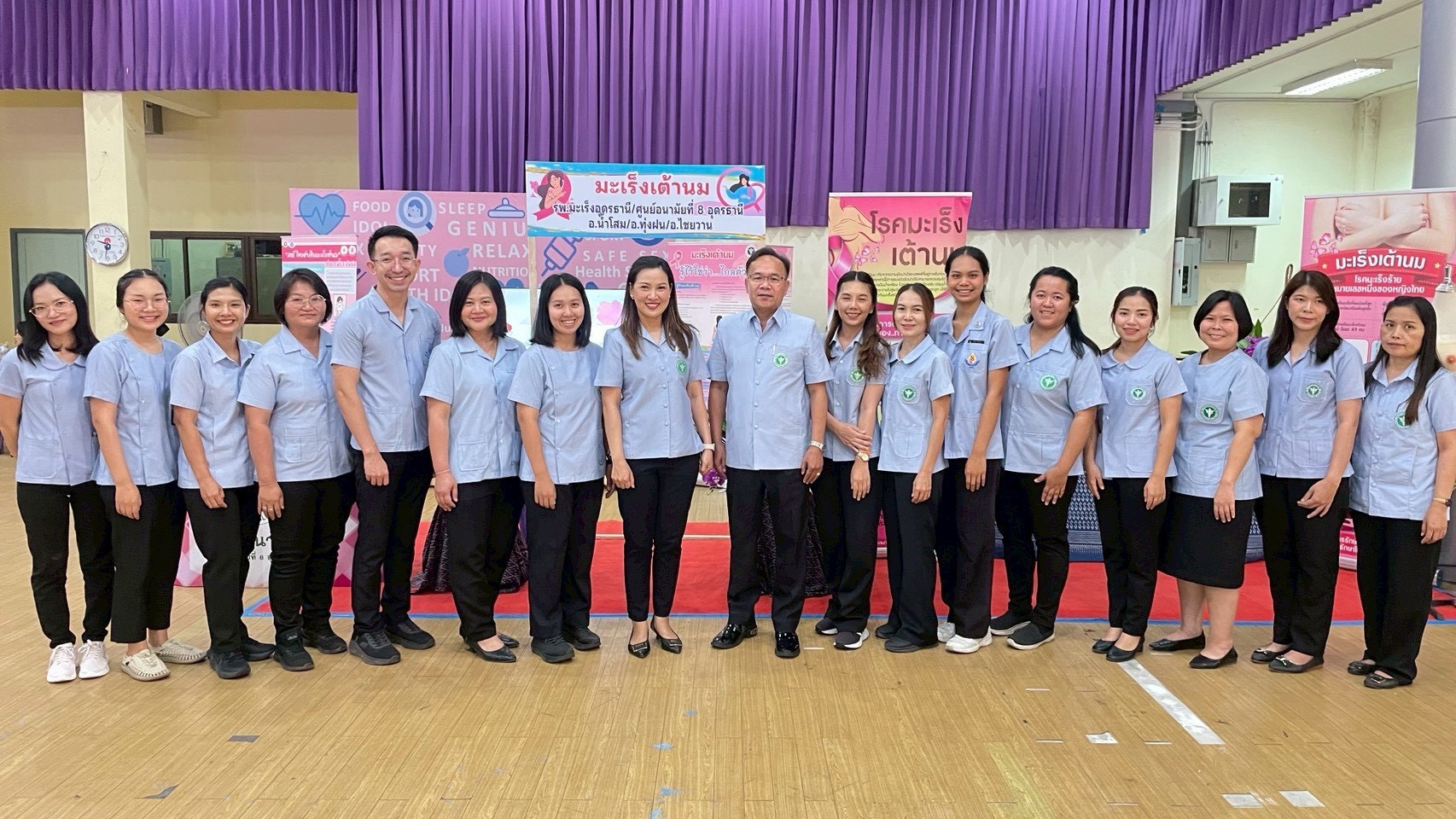 วันที่ 24 เมษายน 2569 นายแพทย์กฤษฎา ศิริชัยสิทธิ์ ผู้อำนวยการศูนย์อนามัยที่ 8 อุดรธานีมอบหมายให้ นางสาวศิริพร ศรีเทวิณ ผู้ช่วยผู้อำนวยการศูนย์อนามัยที่ 8 อุดรธานี พร้อมด้วยกลุ่มพัฒนาการส่งเสริมสุขภาพวัยทำงาน ร่วมกับ สำนักงานสาธารณสุขจังหวัดอุดรธานี จัดบูธ นิทรรศการให้ความรู้เรื่องมะเร็งเต้านม พร้อมให้บริการตรวจคัดกรองมะเร็งเต้านมโดยบุคลากรสาธารณสุข และสอนวิธีการตรวจเต้านมด้วยตนเอง ณ โรงเรียนมัธยมเทศบาล 5 นครอุดรธานี อำเภอเมือง จังหวัดอุดรธานี โดยมีนายราชันย์ ซุ้นหัว ผู้ว่าราชการจังหวัดอุดรธานี เป็นประธานในพิธีเปิด พร้อมด้วย ดร.สุพัฒน์ กองศรีมา รองนายแพทย์สาธารณสุขจังหวัดอุดรธานี เป็นผู้กล่าวรายงานกิจกรรมนี้มีวัตถุประสงค์ เพื่อส่งเสริมความรอบรู้สุขภาพให้ประชาชนทั่วไปและประชาชนกลุ่มเสี่ยงให้มีความรู้ ความเข้าใจเกี่ยวกับปัจจัยเสี่ยง และการป้องกันโรคมะเร็ง เพิ่มอัตราการเข้าถึงการตรวจคัดกรองมะเร็งในระยะเริ่มแรก และสร้างเครือข่ายในการเฝ้าระวังสุขภาพในชุมชน ผู้เข้าร่วมกิจกรรม ประกอบด้วย ประชาชนทั่วไป ประชาชนกลุ่มเสี่ยง และเจ้าหน้าที่ผู้เกี่ยวข้อง จากหน่วยงานสำนักงานสาธารณสุขจังหวัดอุดรธานี, โรงพยาบาลอุดรธานี, โรงพยาบาลมะเร็งอุดรธานี,ศูนย์วิทยาศาสตร์การแพทย์ที่ ๘ อุดรธานี,สำนักงานป้องกันและควบคุมโรคที่ 8 อุดรธานี และหน่วยงานสาธารณสุขระดับอำเภอ/ตำบลทุกแห่ง รวมจำนวนทั้งสิ้น 400 คน