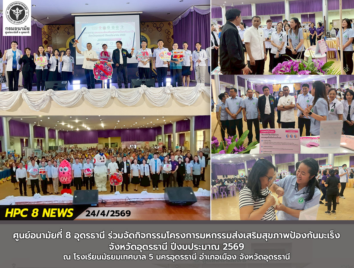 นย์อนามัยที่ 8 อุดรธานี ร่วมจัดกิจกรรมโครงการมหกรรมส่งเสริมสุขภาพป้องกันมะเร็ง จังหวัดอุดรธานี ปีงบประมาณ 2569 ณ โรงเรียนมัธยมเทศบาล 5 นครอุดรธานี อำเภอเมือง จังหวัดอุดรธานี